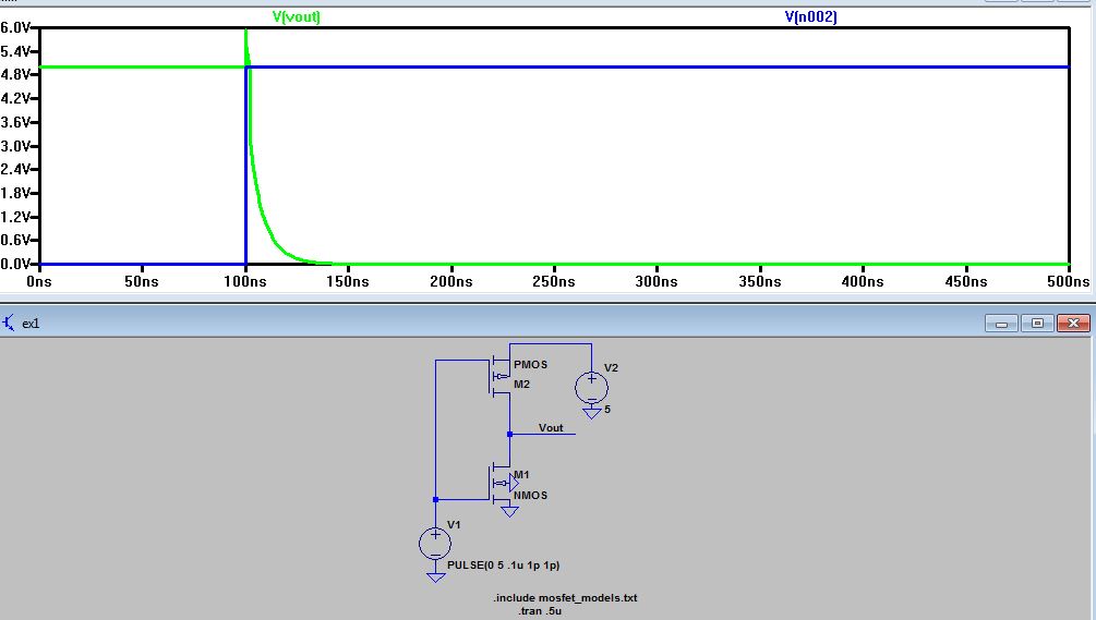 that the length of the NMOS is 5 um and its width is 500