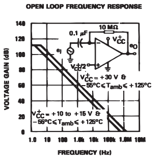 looking at the plot below from the datasheet we can see the open loop gain, and