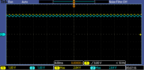 changes to 2V. The output (blue) is now swinging at around 3V.
