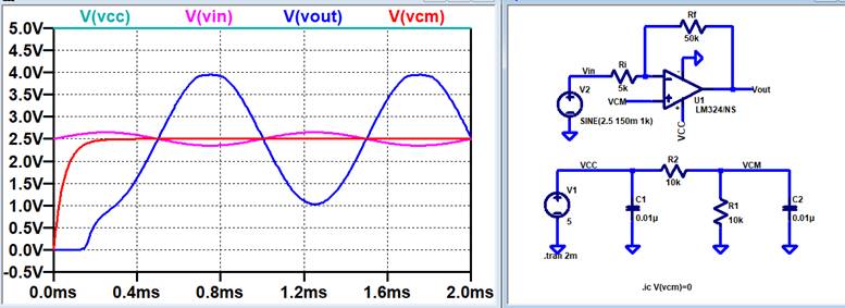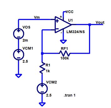 schematic, and snapshot show the result if VCM stays at 2.5V and Vin offset