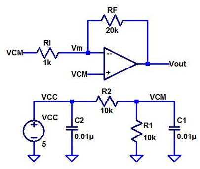 voltage divider. However, if VCC changes the VCM will be half of that voltage,