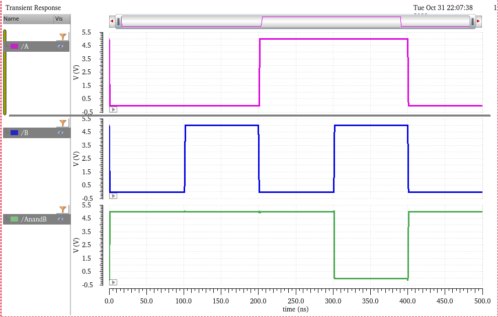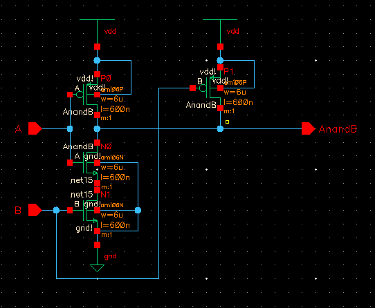 Here is my schematic for the NAND gate which I will make a symbol from this cellview.