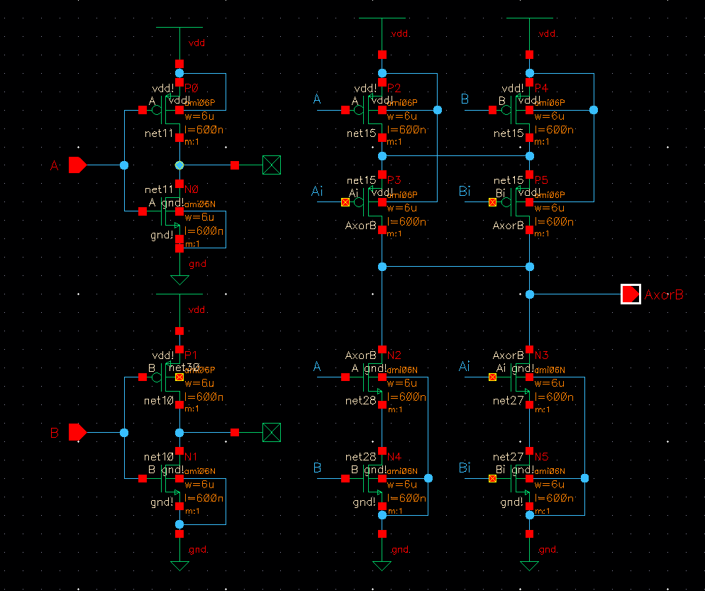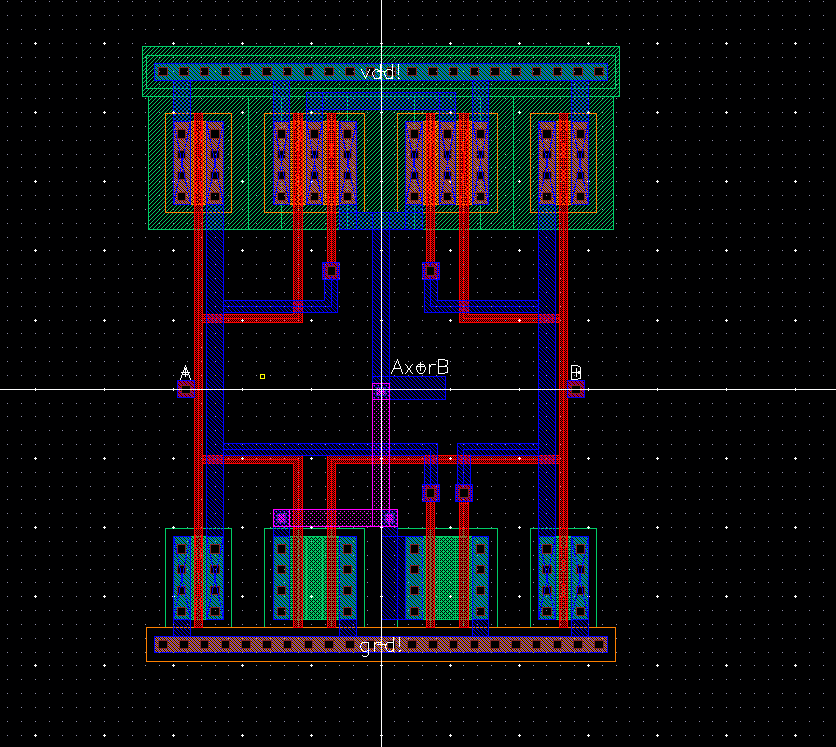 Here is my schematic for the XOR gate which I will make a symbol from this cellview.