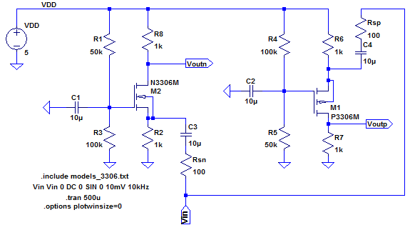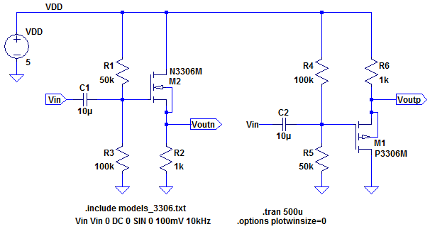 the PMOS is 5, both with 180 degree phase shifts.