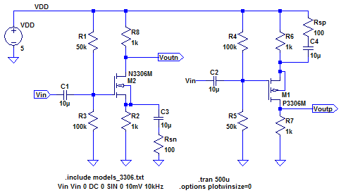 the input resistance for both NMOS and PMOS is 33k. The following