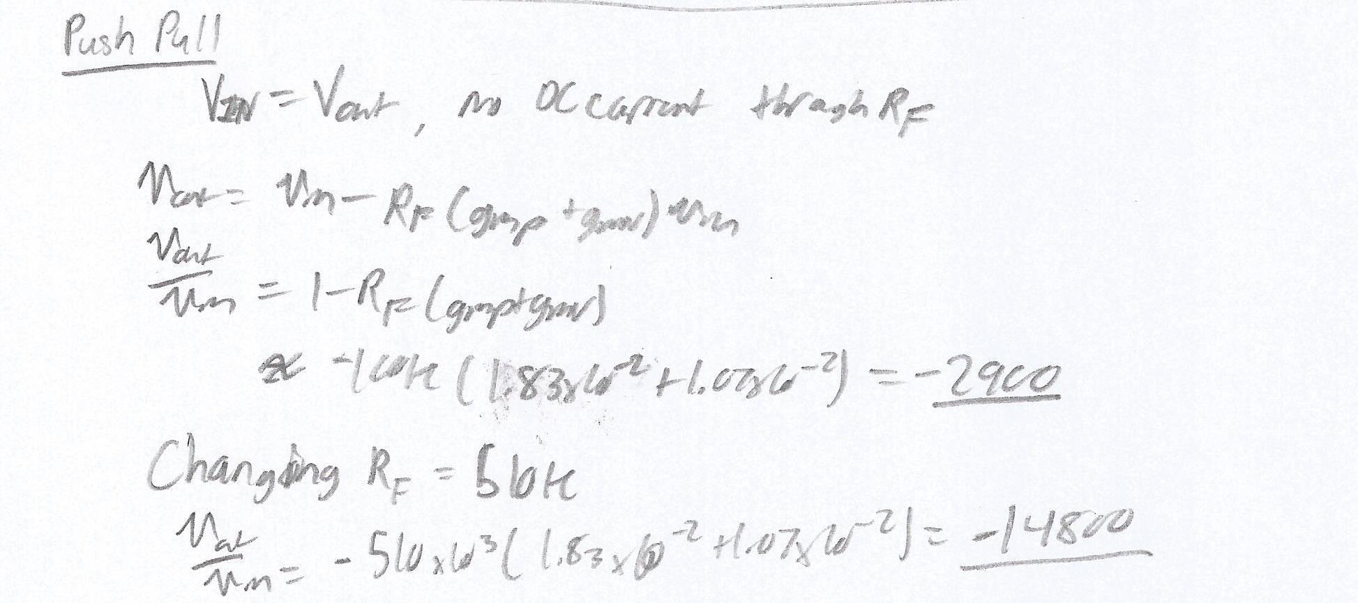 The operation for the Push-Pull amplifier is outlined in the hand calculations below.