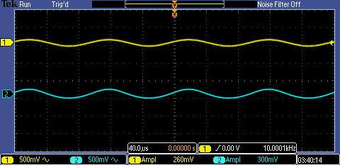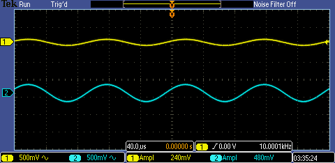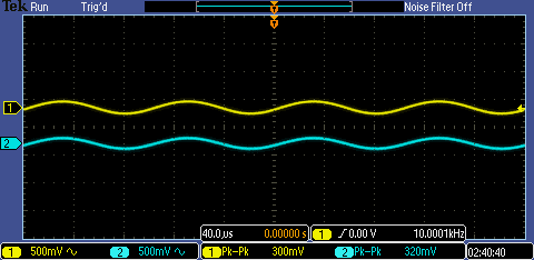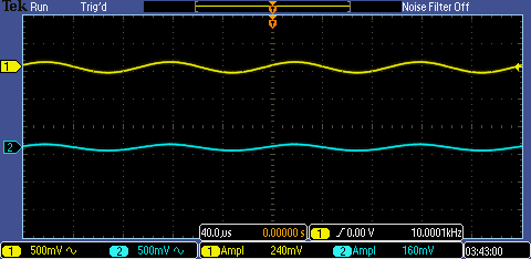 unmodified amplifier. The waveform above shows that the output is half