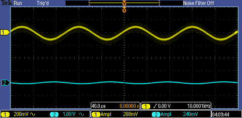 a 1k output resistor causes the amplitude of Vout to drop to 200mV,