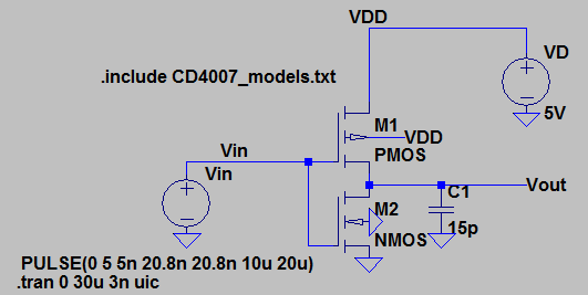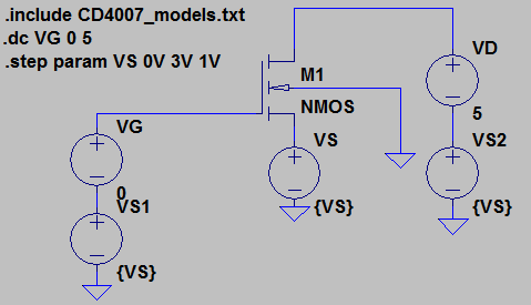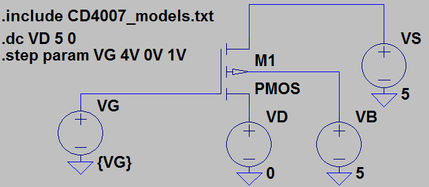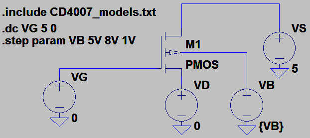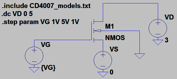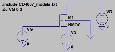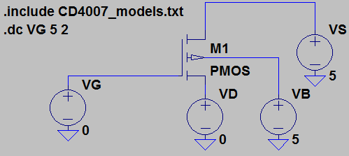 The following SPICE Level=1 model assumes these values: CD4007_models.txt