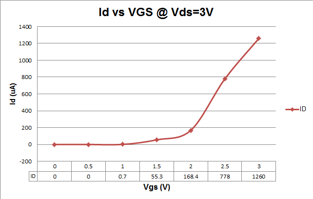 ID vs VGS (0<VGS<3V) with VDS=3V