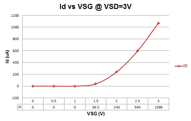 ID vs VSG (0<VSG<3V) with VSD=3V