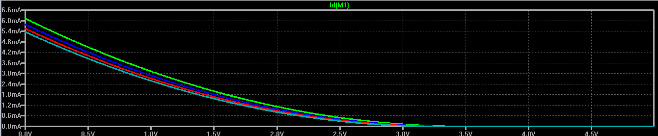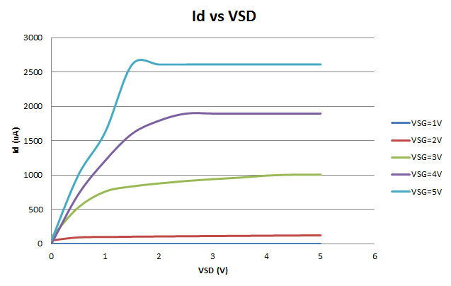 ID vs VSD (0<VSD<5V) for VSG varying from 1V to 5V