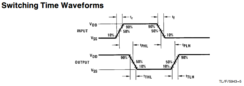 - Experimentally measure the delay of an inverter (similar to what is seen on page 3 of the datasheet).