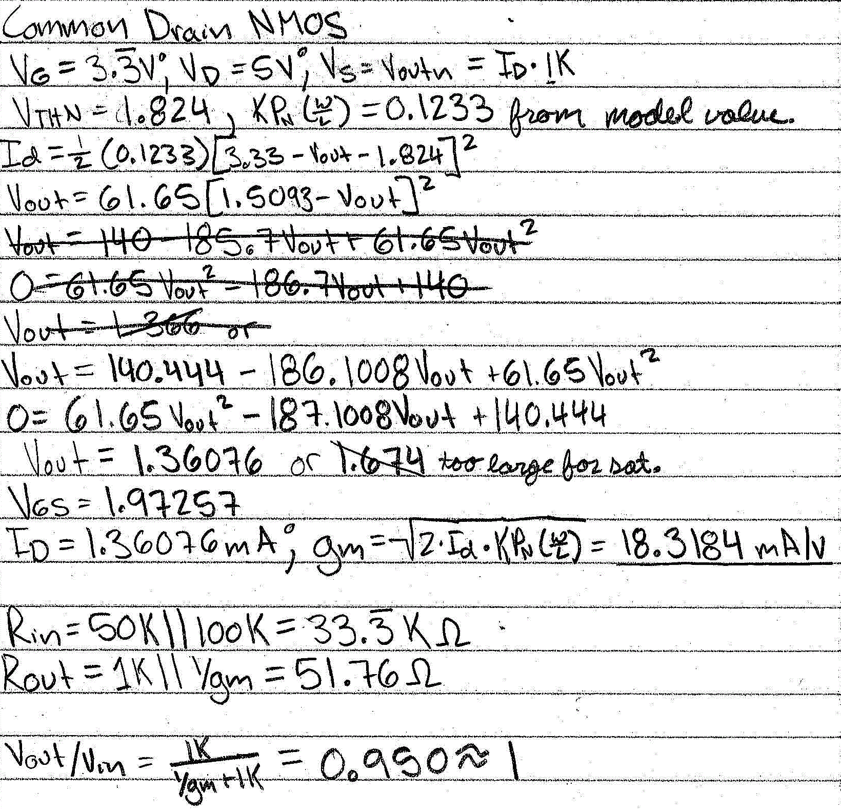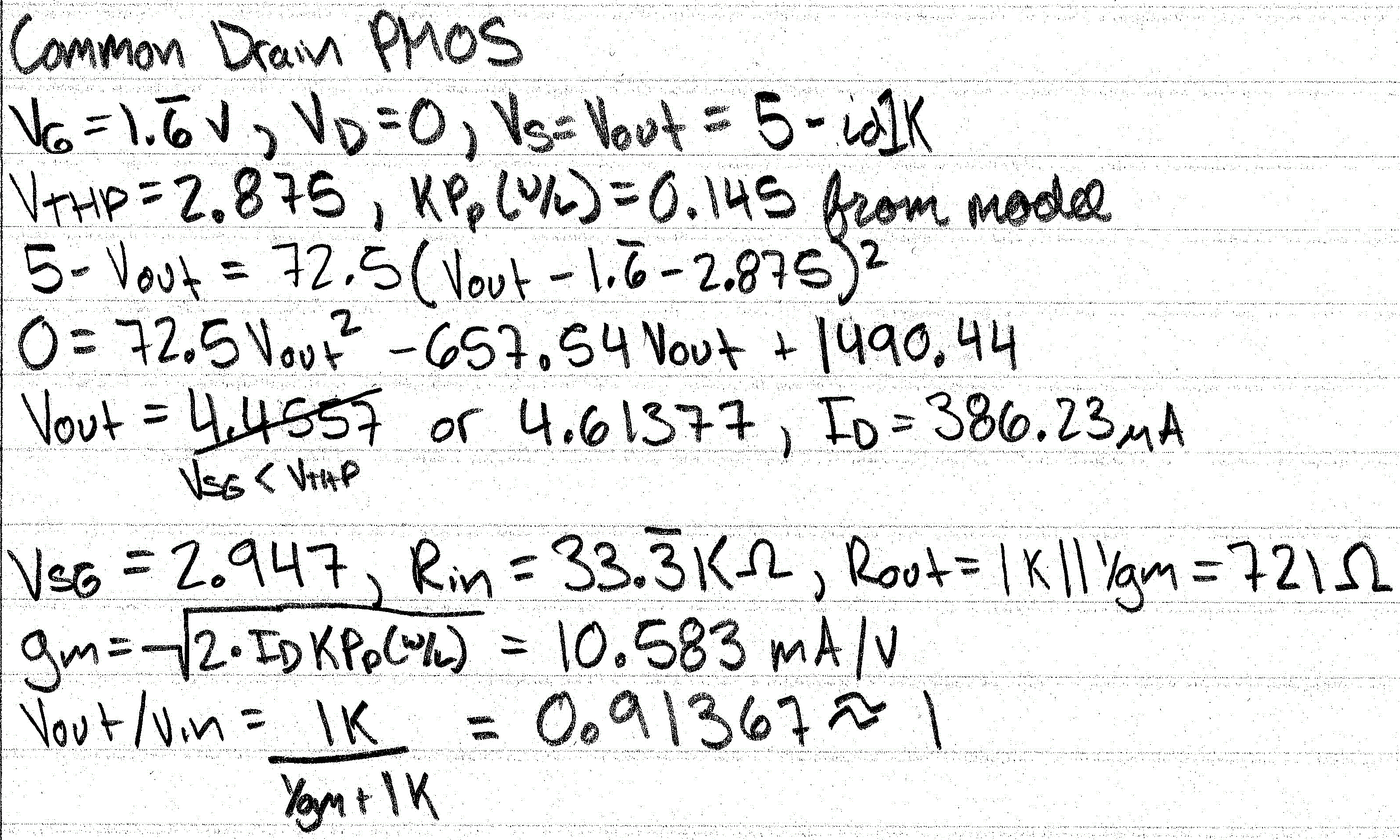 | Gain The gain should be approximately 1 but body effect causes it to be lower |