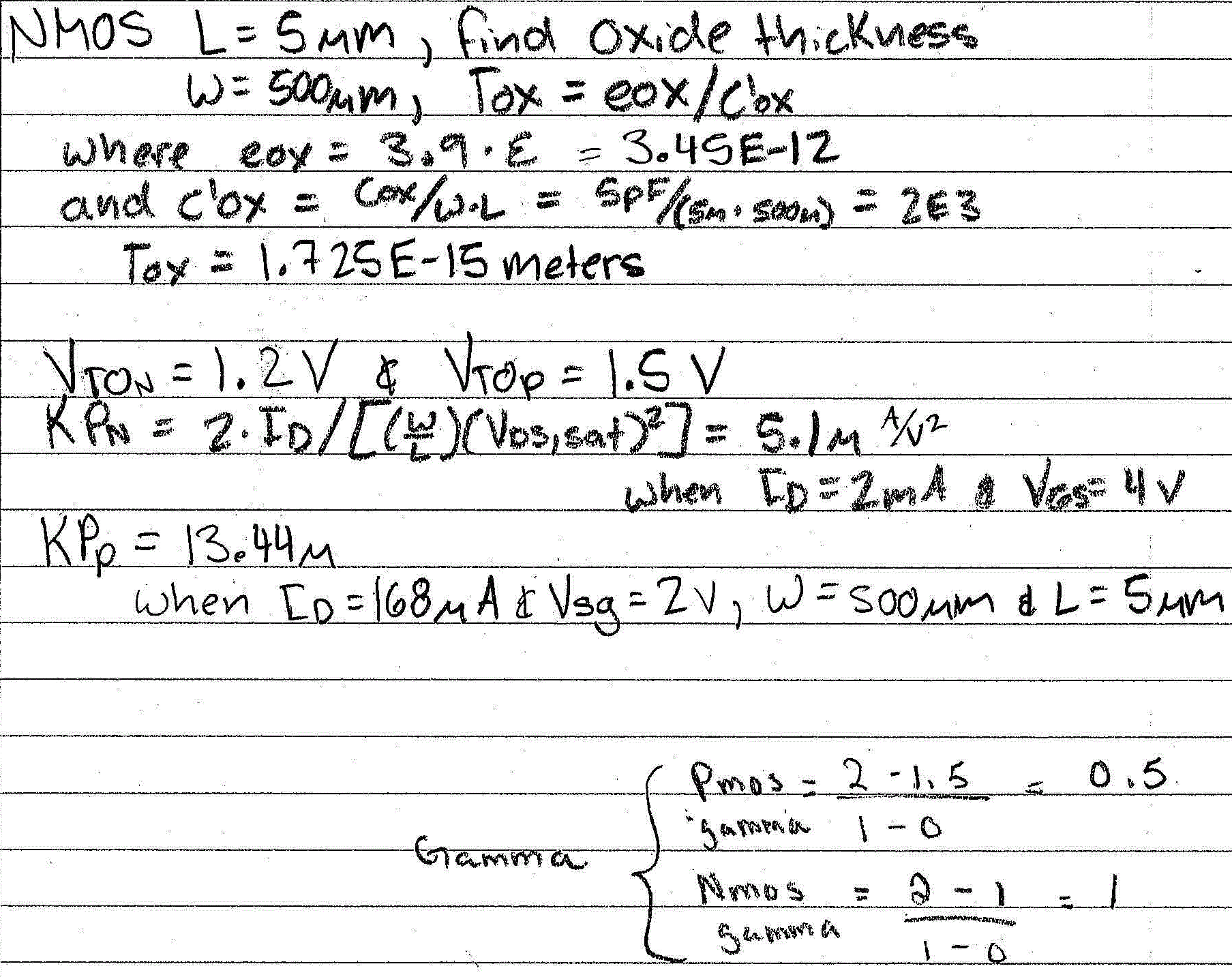 length of the NMOS is 5 um and its width is 500 um calculate the