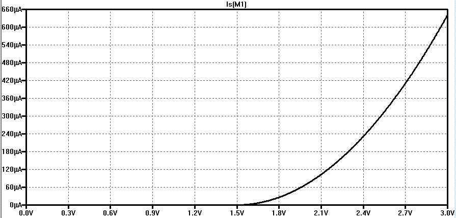 - ID v. VGS (0 < VGS < 3 V) with VDS = 3 V