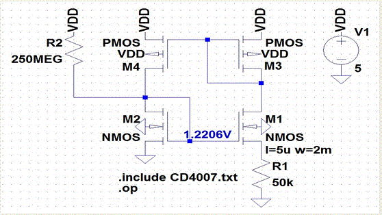 MOSFET model created in lab 8 and, again, the MOSFETs in the CD4007.pdf CMOS transistor array.