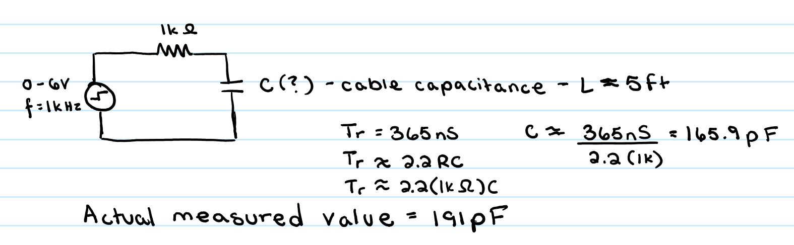 unknown capacitance of a coaxial cable. We built a simple RC circuit