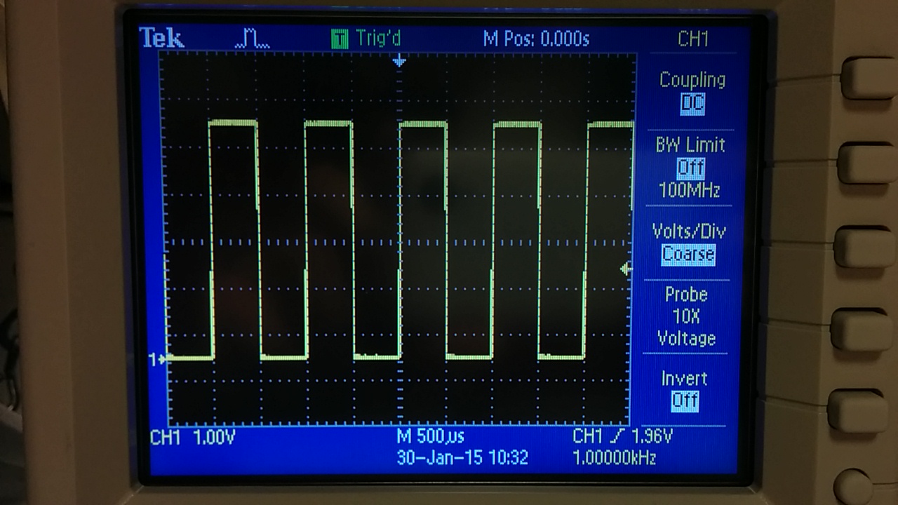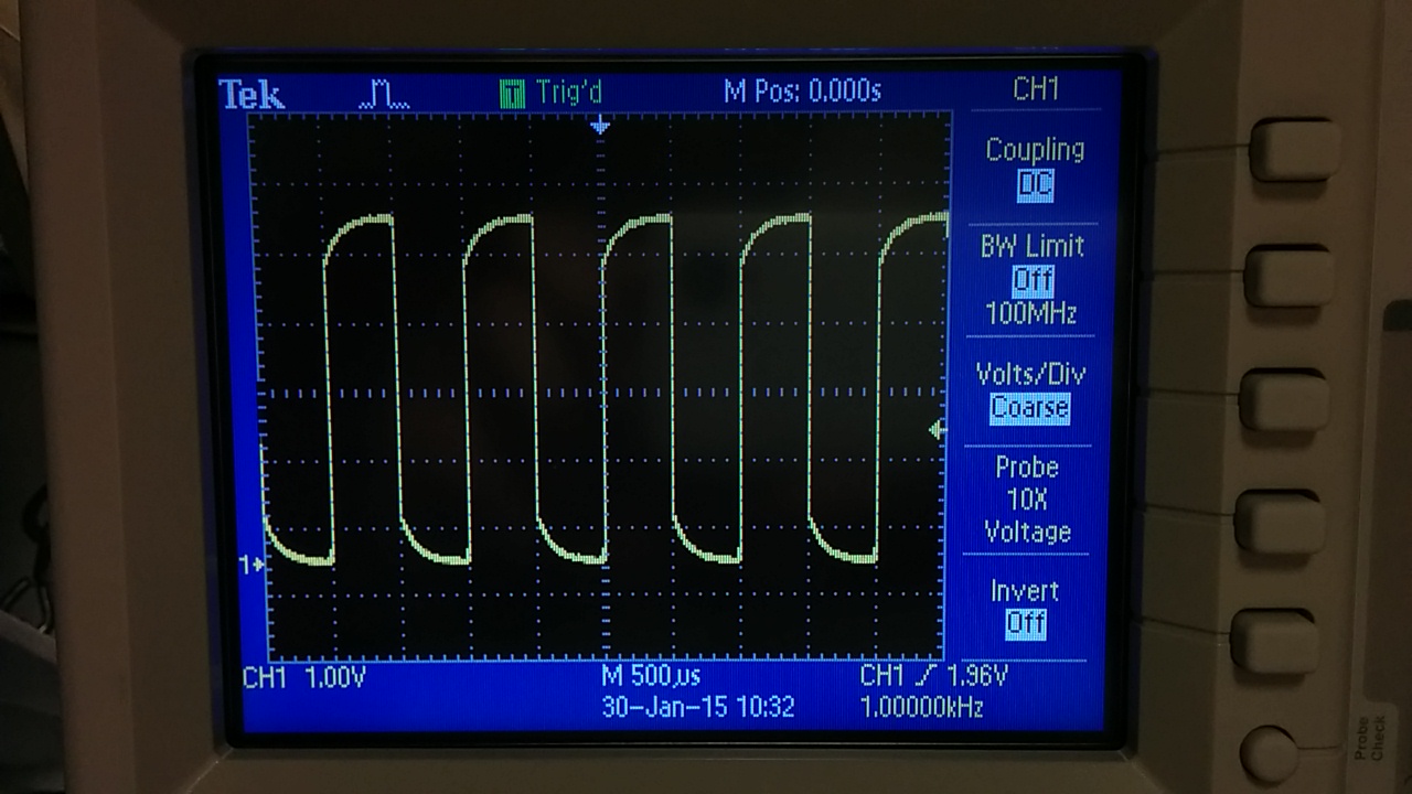 setting up the experiment with a 1k resistor and a 1k Hz pulse signal,