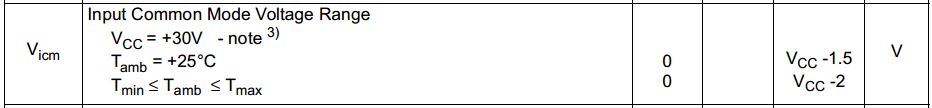 maximum common mode voltage is VCC - 2. For example, if VCC was set at