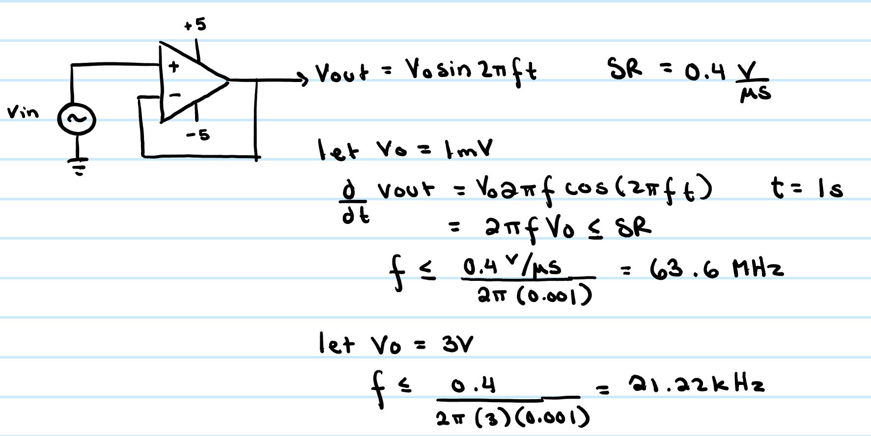 spec sheet of 0.4 V/uS. Our calculations of the square wave input,