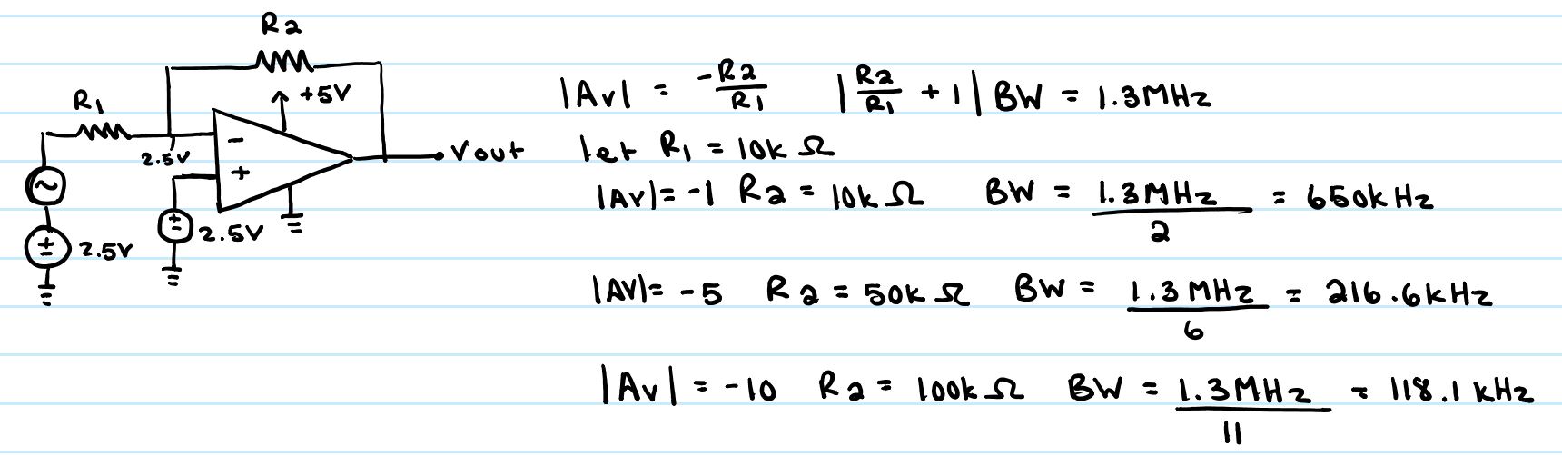 Exercise #1: Estimate, using the datasheet, the bandwidths for non-inverting op-amp topologies having gains of 1, 5, and 10.
