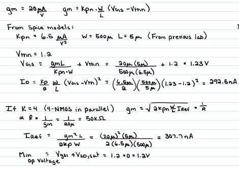 - Again, use these two voltages to bias an NMOS cascode current mirror then characterize.