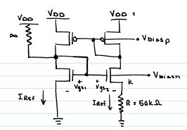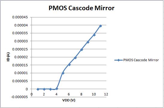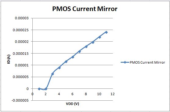 - For the first experiment use the NMOS current mirror to drive two PMOS gate-drain connected devices.
