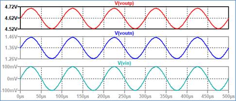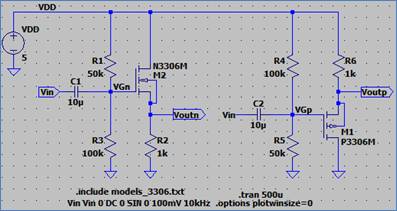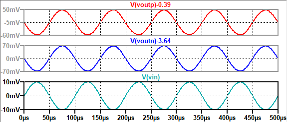 LtSpice Simulations for both NMOS and PMOS Ltspice waveforms for Voutp, Voutn and Vin