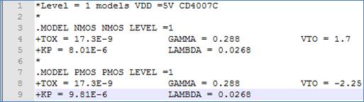 characterize the transistors in the CD4007 (not the CD4007UB chip) and generate SPICE Level=1