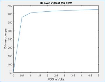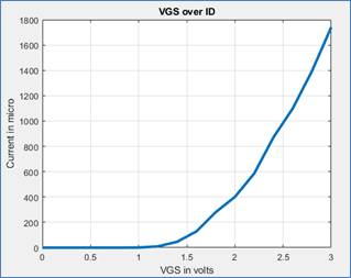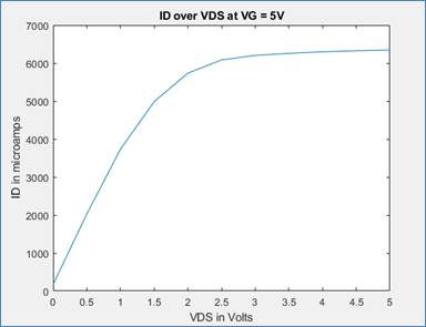 For this part we graphed ID vs. VGS with VDS at 5V
