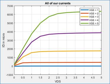 For this part we were to graph ID vs. VDS varying VDS from 0