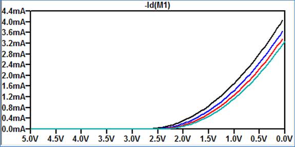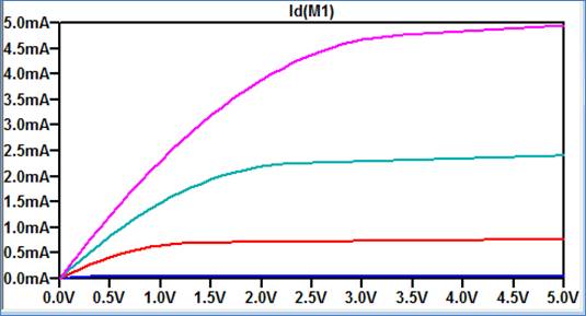 ID v. VDS (0 < VDS < 5 V) for VGS varying