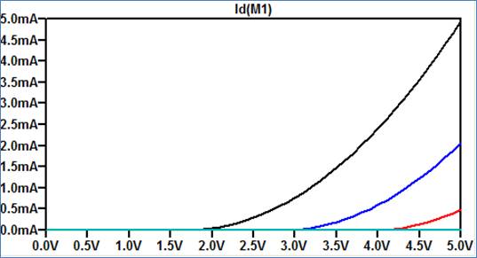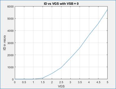 ID v. VGS (0 < VGS < 5 V) with VDS = 5 V for