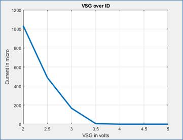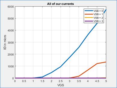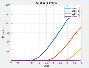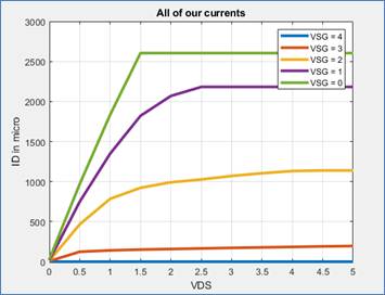 For this part we graphed ID vs. VSG with VSD at 5V