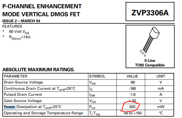 wattage inside the PMOS and that was getting very hot. From the datasheet: