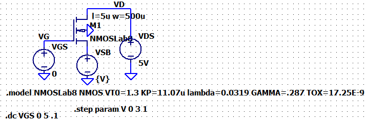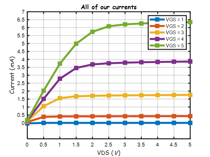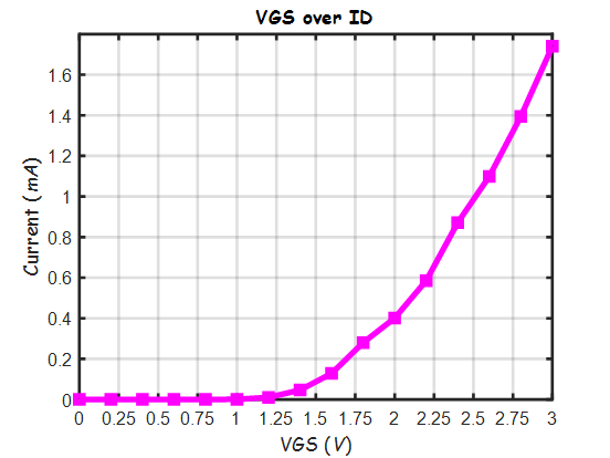 experiment, while VDS = 3V, we will be sweeping VGS and finding the current
