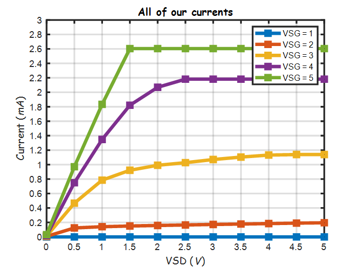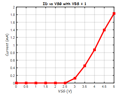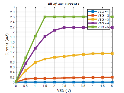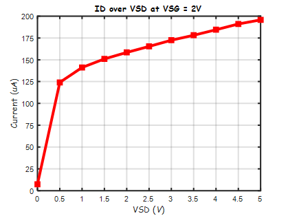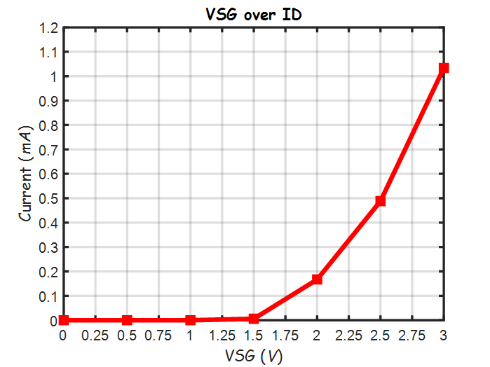 different VSG voltages, we will record the current ID over sweeping VSD.