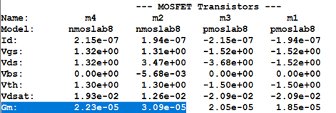 K multiplier = 2, NMOS M2 W/L = 1m/5μ