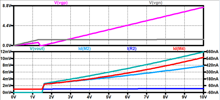 gates and Curernts (VDD Sweeping from 0V-10V):