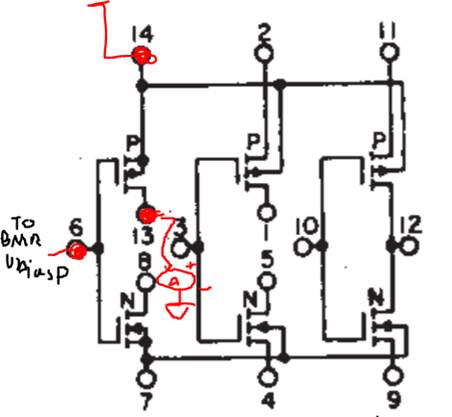 and PMOS BMR, we used 2 CMOS ICs, one for just the PMOS current mirror, and the