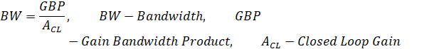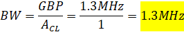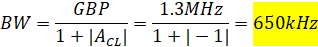 Calculated bandwidth with unity gain (gain of one) using the non-inverting topology.