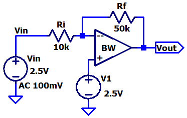 Inverting topology (Gain -5) circuit: