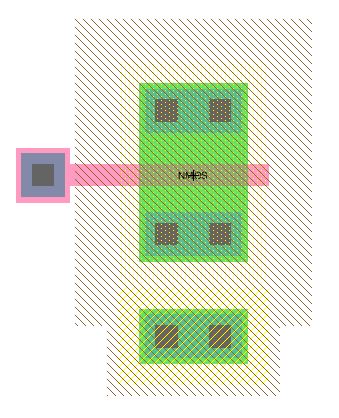 - Move the Actives towards the MOSFET until they overlap, also move the P-Well in NMOS
