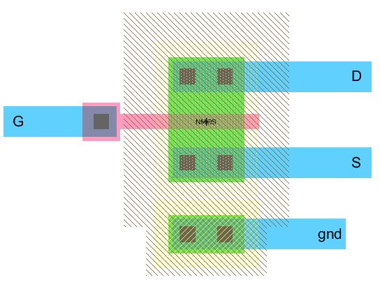 - For NMOS, connect S terminal to gnd; for PMOS, connect S