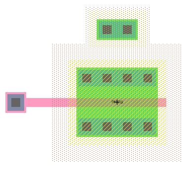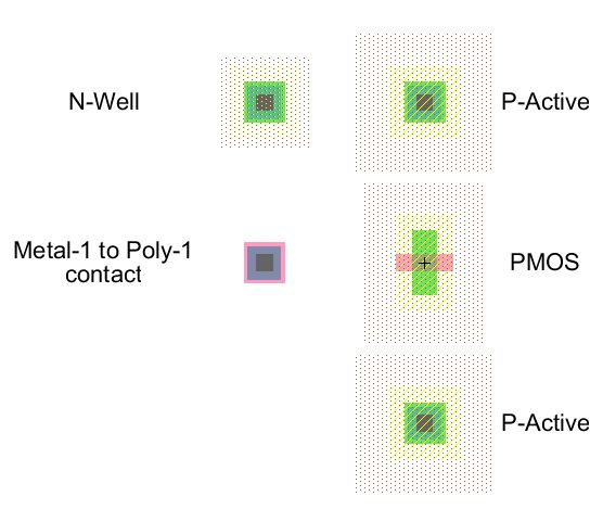 (N-Well for PMOS) so the it overlaps with the substrate. - Connect the Metal-1-Poly-1-Contact to the Poly-1 of the MOSFETs