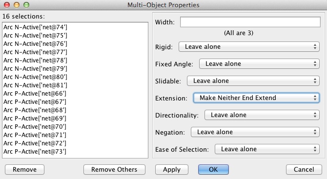 - Select all the Active arcs and press Ctrl-I, int the Multi-Object Properties
