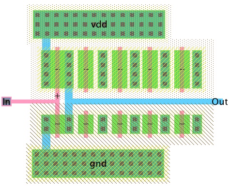 <your_initials>_inv_100_50 - We will implement this inverter with multiplier, ie. place 5 MOSFETs in parallel