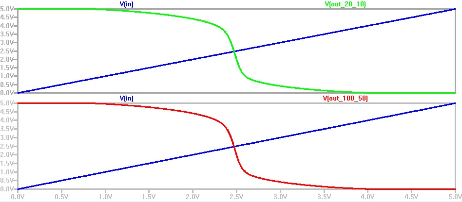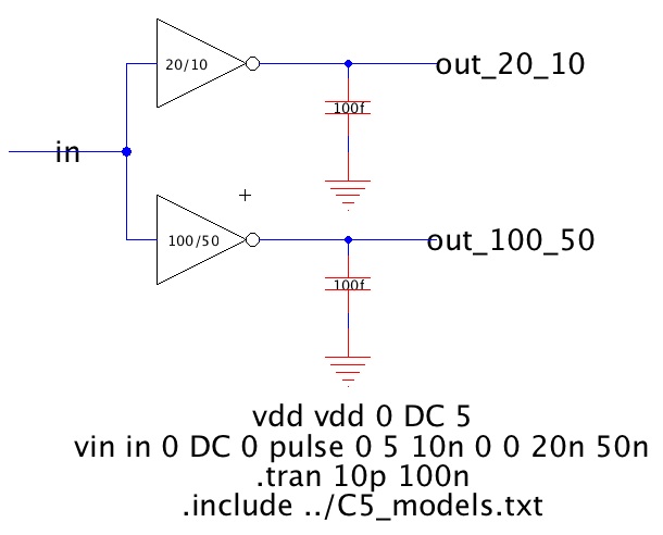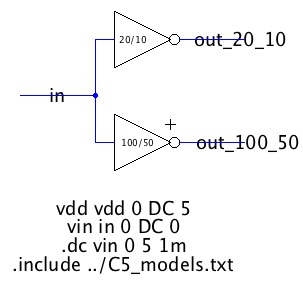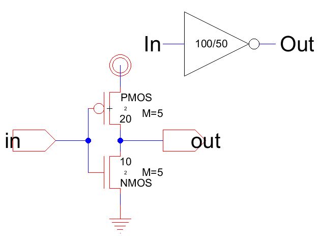 In this lab, we will create two inverters (one is 20/10, the other is 100/50)
