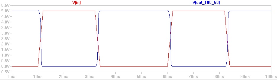 - 100/50 inverters (top to bottom: 100fF, 1pF, 10pF)